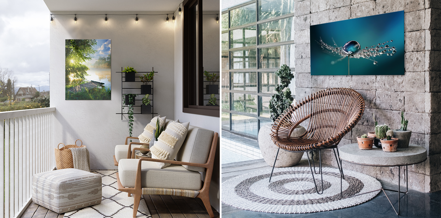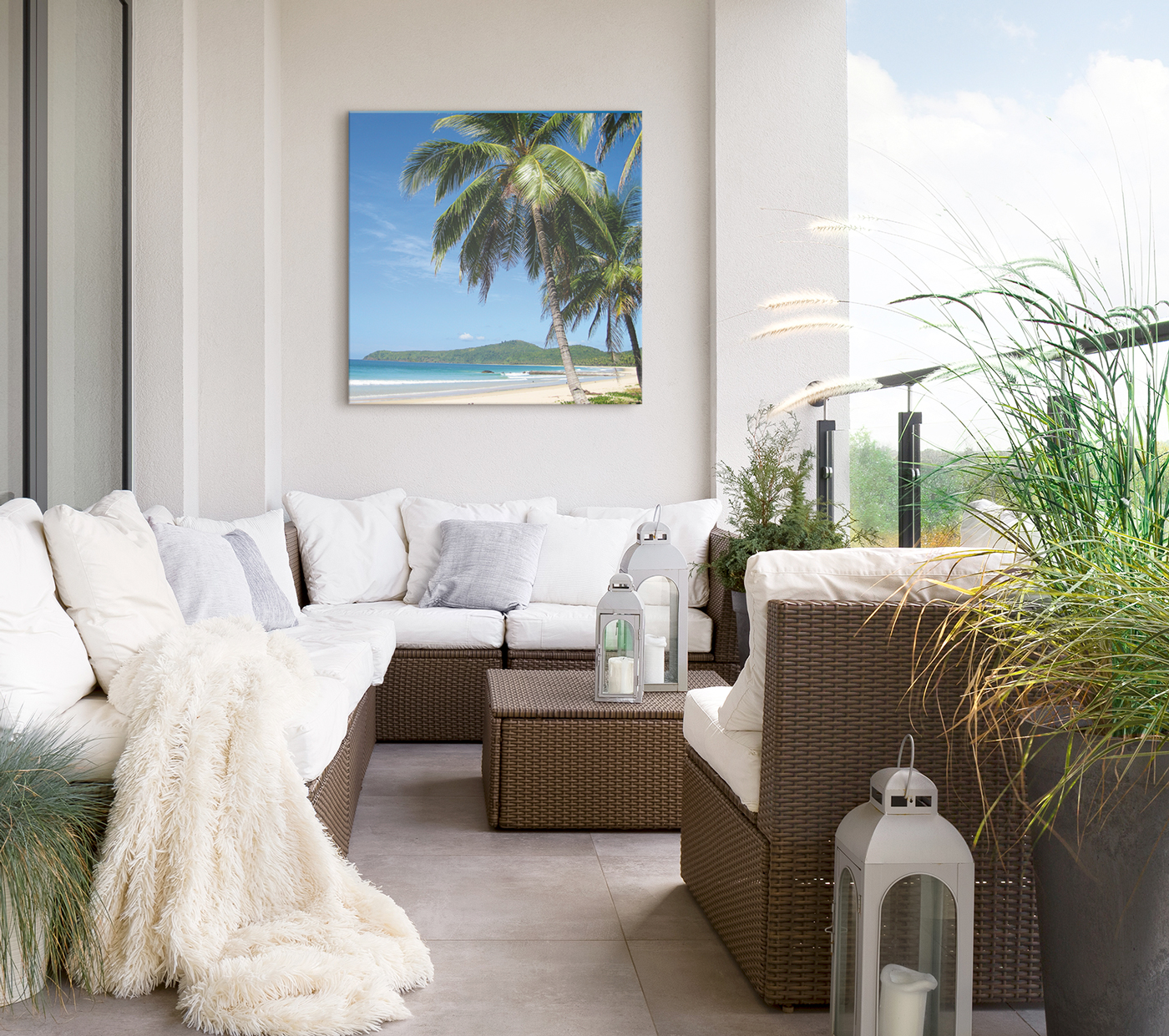Weiße Wände? Nicht mit uns! Auch draußen möchte man keine leeren Wände anstarren - gerade, wenn die Aussicht vom Balkon selbst nicht besonders einladend ist. Da hört sich ein Blick auf einen traumhaften Strand, einen Wald oder einen stimmungsvollen Sonnenuntergang doch wesentlich besser an, oder? Mit Outdoorbildern haben Sie unzählige Möglichkeiten, Ihrem Balkon oder Ihrer Terrasse das gewisse Etwas zu verleihen und sich selbst an die Orte ihrer Wahl katapultieren zu lassen. Sie haben die Wahl, was Größe und Motiv angeht und können sogar ein Wunschmotiv drucken lassen - so können Sie Ihren Außenbereich individuell und nach Ihren Wünschen gestalten.
