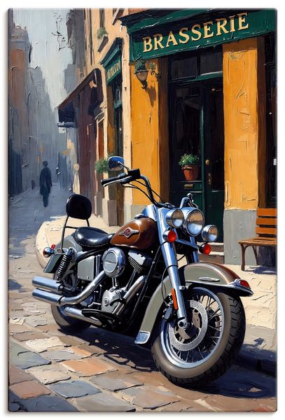 © Jean-Louis Glineur - Eine parkende Harley vor einem Brasserie