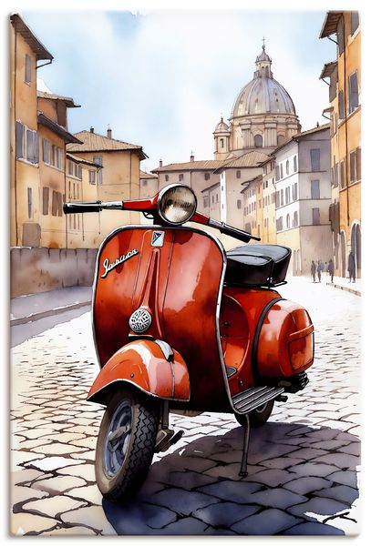 Roter Motorroller in Italien Wandbild