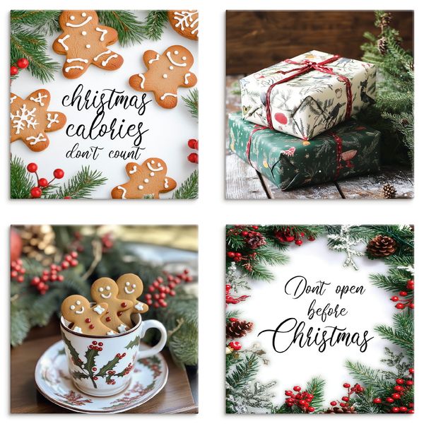 © Artland GmbH / Nora Vacs - Weihnachtsbilder-Set mit Lebkuchenmännern, Tannenzweigen und Geschenken