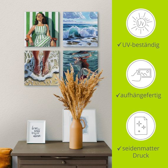 Das Set umfasst vier aufeinander abgestimmte Motive, die Ihrem Wohnraum im Nu ein neues Gesicht verleihen. Gestalten Sie Ihre Bilderwand nach eigenen Wünschen und probieren Sie die unterschiedlichsten Wandplatzierungen aus: Nebeneinander, im Quadrat, übereinander oder auch verteilt an mehreren Wänden.