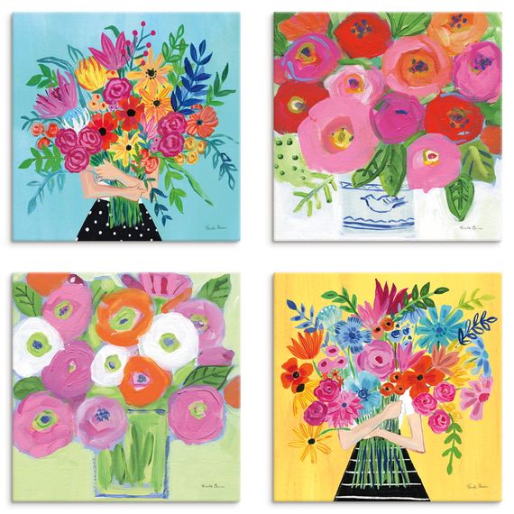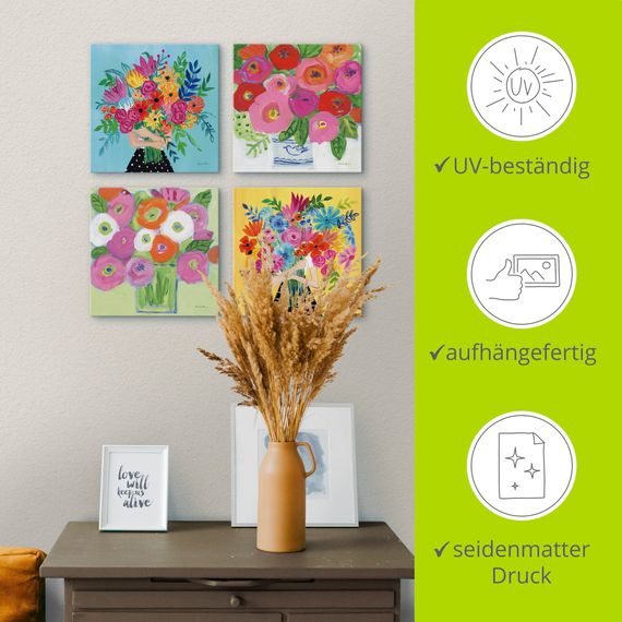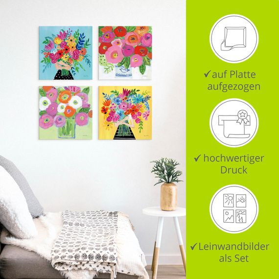 A bunch of Flowers Leinwandbilder auf Platte, Set 4tlg. je 30x30 cm