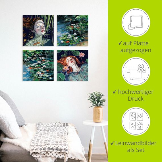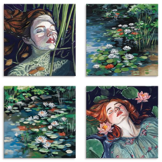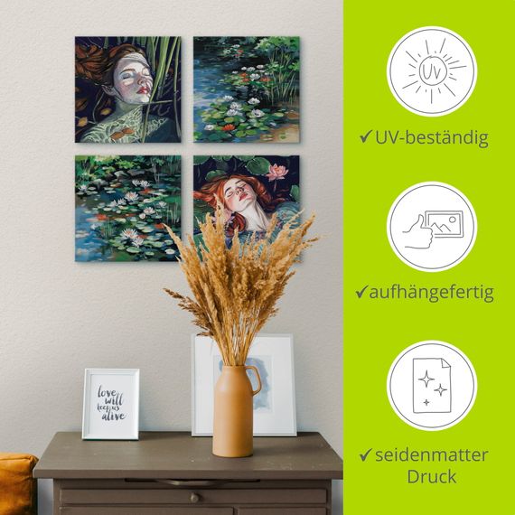 Ophelia Nymphaea Leinwandbilder auf Platte, Set 4tlg. je 30x30 cm