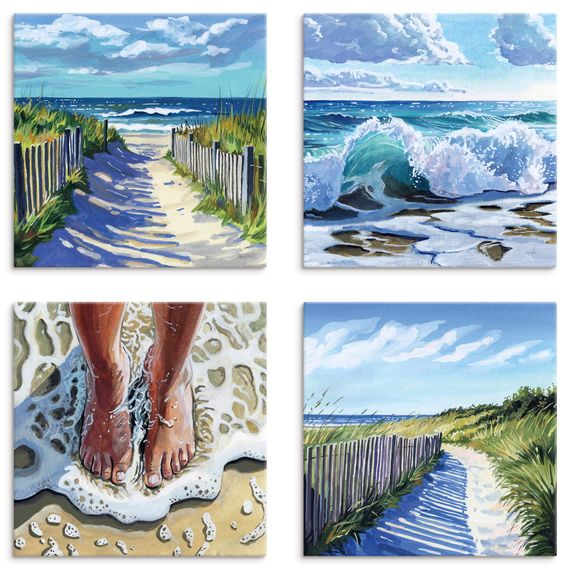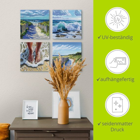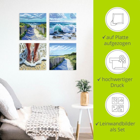 To the beach Leinwandbilder auf Platte, Set 4tlg. je 30x30 cm