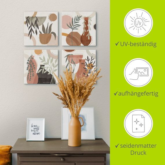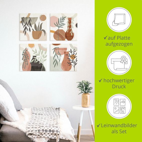 Botanical Forms Leinwandbilder auf Platte, Set 4tlg. je 30x30 cm