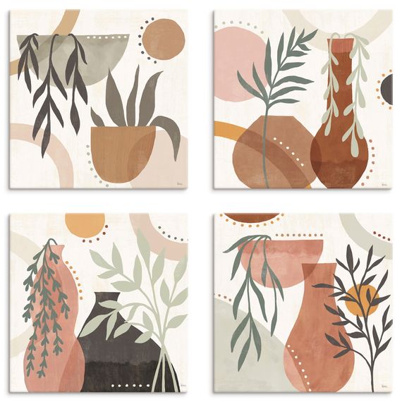 Das Set umfasst vier aufeinander abgestimmte Motive, die Ihrem Wohnraum im Nu ein neues Gesicht verleihen. Gestalten Sie Ihre Bilderwand nach eigenen Wünschen und probieren Sie die unterschiedlichsten Wandplatzierungen aus: Nebeneinander, im Quadrat, übereinander oder auch verteilt an mehreren Wänden.
